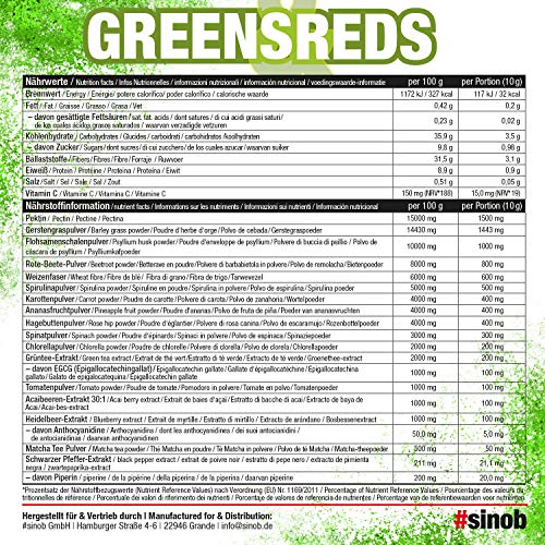 Entdecken Sie unser hochwertiges Greens & Reds – Super Food Pulver, eine kraftvolle, vegane Nahrungsergänzung, die Ihren Körper auf natürliche Weise unterstützt. Mit 300 g Inhalt vereint dieses exklusive Superfood eine sorgfältig ausgewählte Mischung aus 18 nährstoffreichen Zutaten, darunter Acai Pulver, Gerstengras, Rote Beete, Spirulina, Chlorella und viele weitere Superfoods. Das Ergebnis ist eine innovative, ballaststoffreiche Mischung, die Ihren Alltag mit Energie, Wohlbefinden und Vitalität auf ein neues Level hebt.