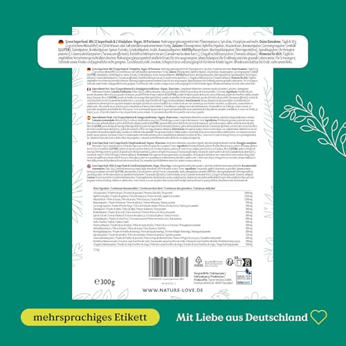 NATURE LOVE® Green Superfood – 300g mit 15 Superfoods & 2 Vitalpilzen für ein natürliches Wohlbefinden