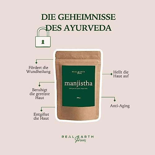 Hergestellt aus sorgfältig ausgewählten ayurvedischen Pflanzen, überzeugt das Real Earth Manjistha-Pulver durch seine reine und organische Qualität. Ohne chemische Zusätze oder Konservierungsstoffe ist es eine bewusste Wahl für alle, die Wert auf nachhaltige, natürliche Kosmetik legen. Das Pulver ist ideal für eine natürliche Gesichtsbehandlung, die tiefenwirksam reinigt und die Haut in ihrer natürlichen Schönheit erstrahlen lässt.