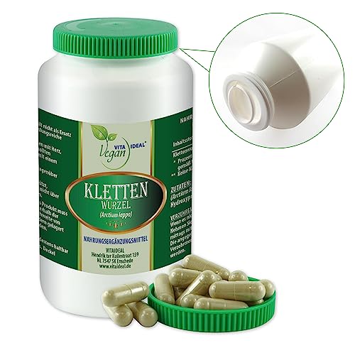 VITA IDEAL Vegan® Kletten Wurzel 120 Kapseln – Arctium lappa – Tagesportion 940mg Klettenwurzel reines Pulver. Natürlich, pflanzlich und ohne Zusatzstoffe, original von VITAIDEAL.