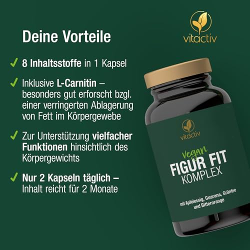 Entdecken Sie den innovativen VITACTIV Figur Fit Komplex, eine hochwirksame und nachhaltig produzierte Stoffwechsel-Kur, die Ihren Körper auf natürliche Weise unterstützt. Mit 120 veganen Kapseln bietet dieses hochwertige Produkt eine kraftvolle Kombination aus bewährten Extrakten wie Apfelessig, Grün-Tee, Guarana, Chili, Bitterorange sowie den essenziellen Nährstoffen Cholin und Chrom. Entwickelt für alle, die Wert auf eine effektive, natürliche Stoffwechselförderung legen, ist unser Produkt in Deutschland laborgeprüft und entspricht höchsten Qualitätsstandards.